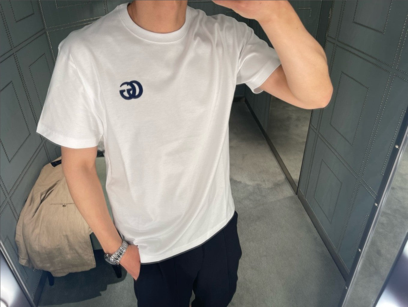 구찌 자수 GG 로고 반팔티