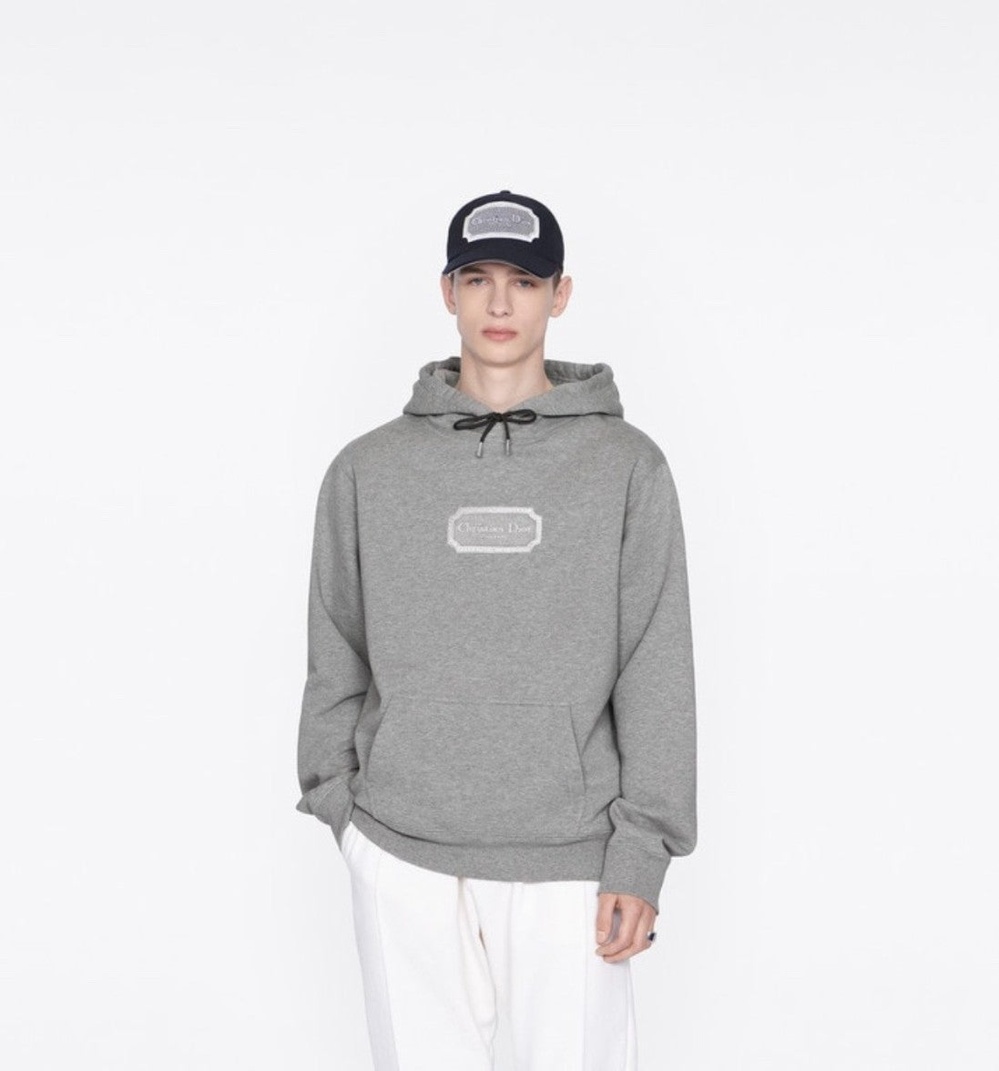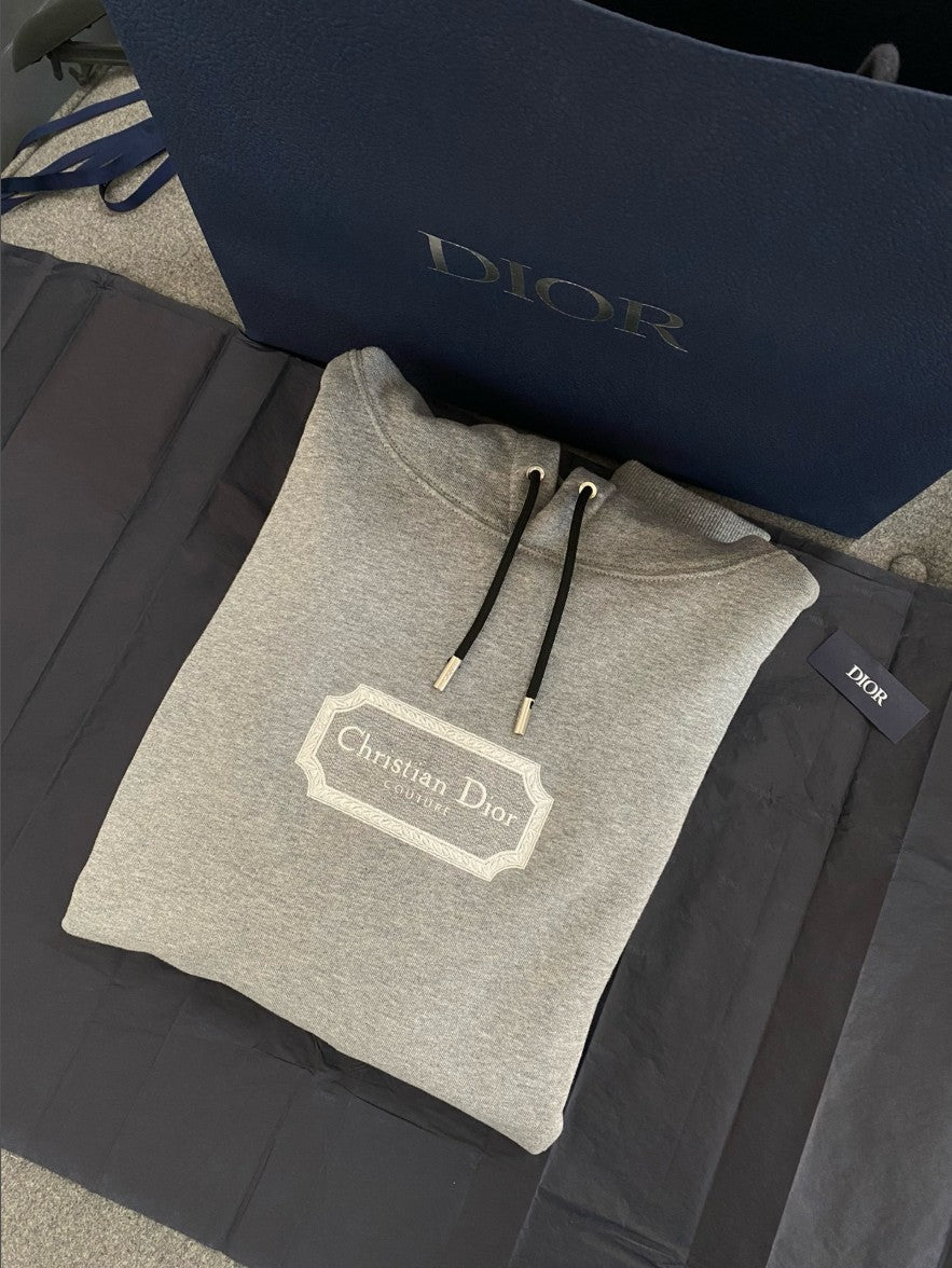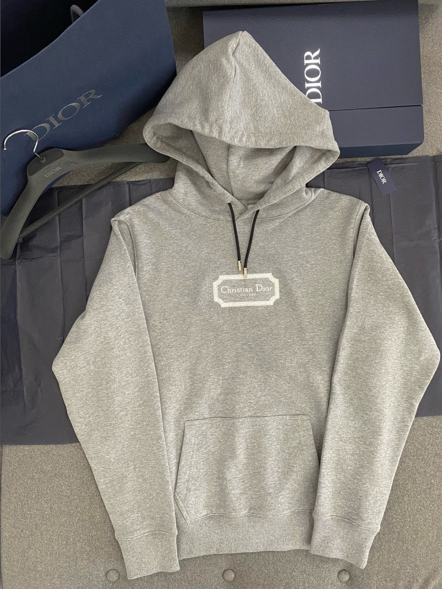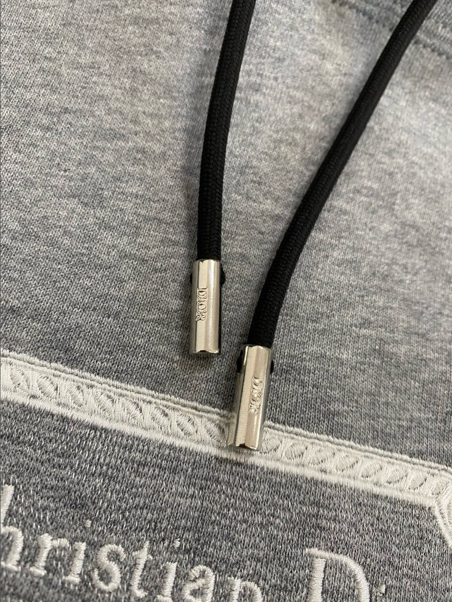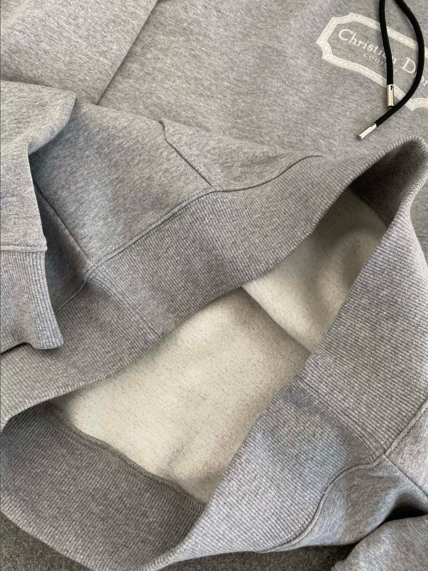 디올 자수 로고 기모 후드티