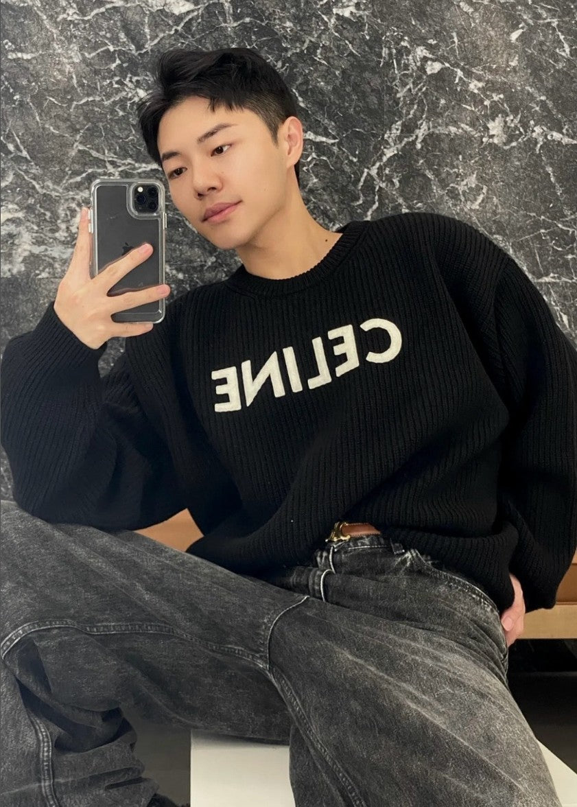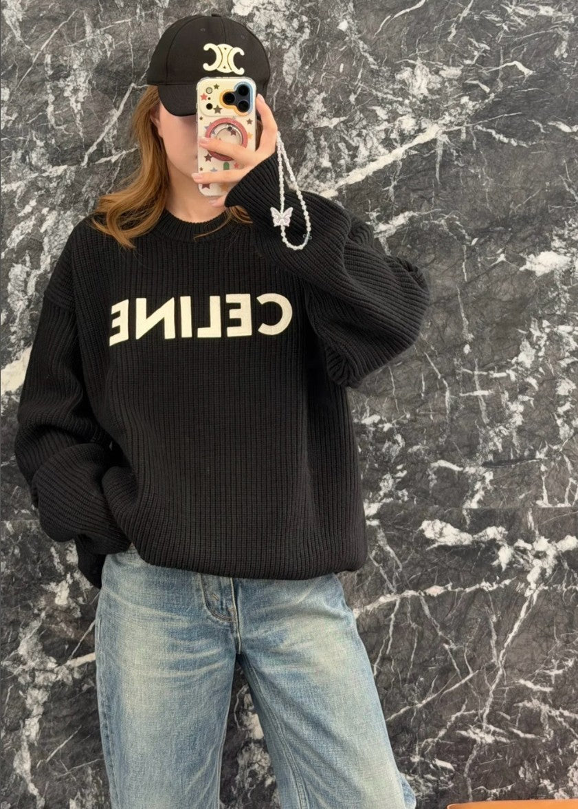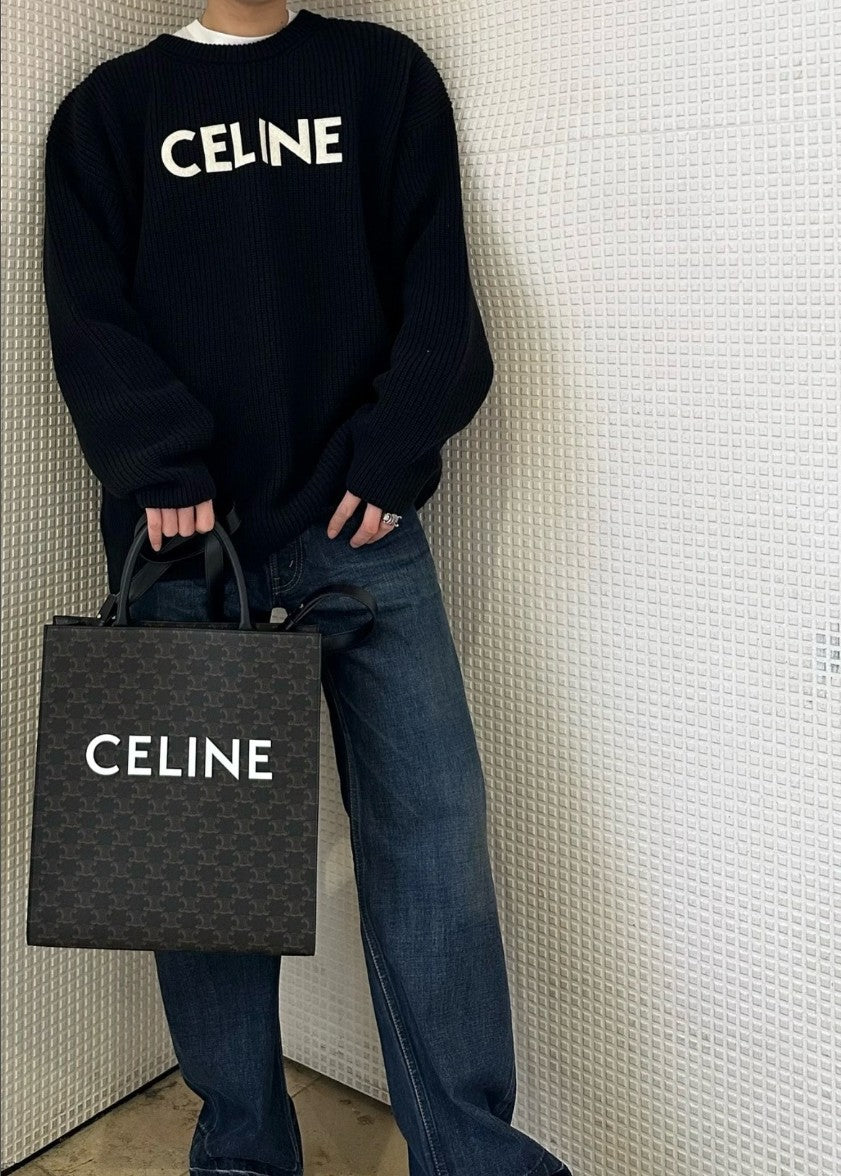 셀린느 레터링 로고 오버핏 풀오버 니트