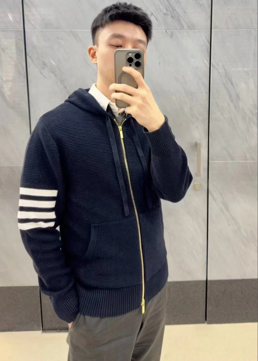 톰브라운 니트 와플 투웨이 후드 집업