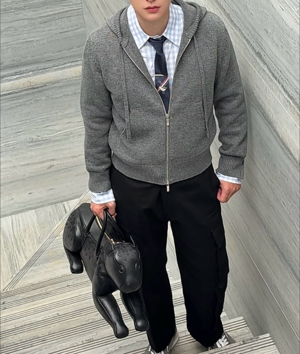 톰브라운 버진 울 니트 후드 집업