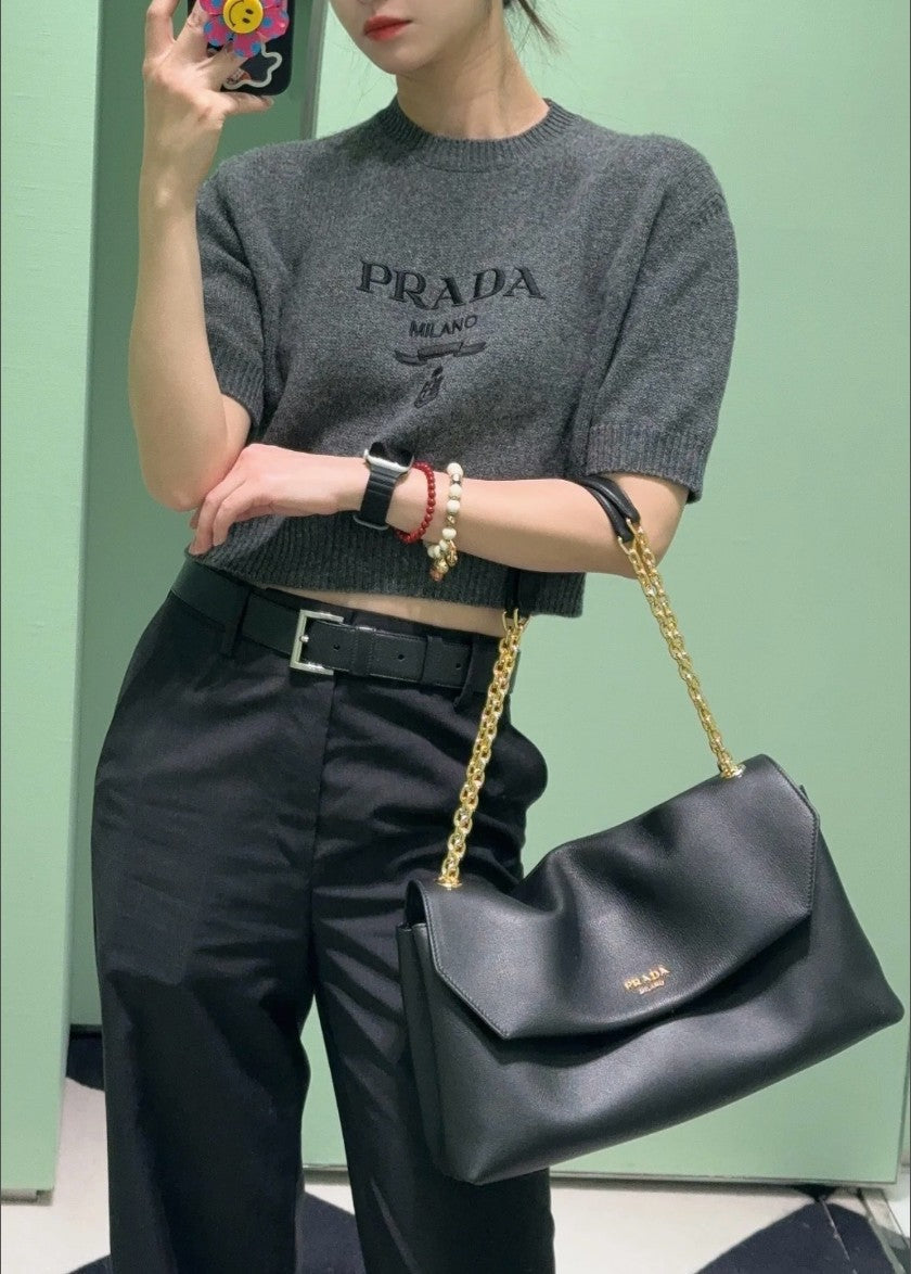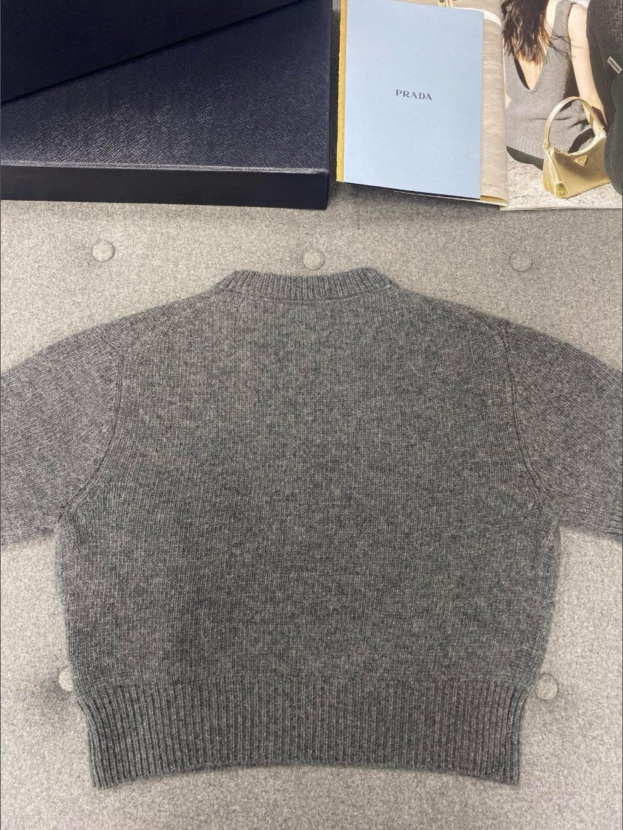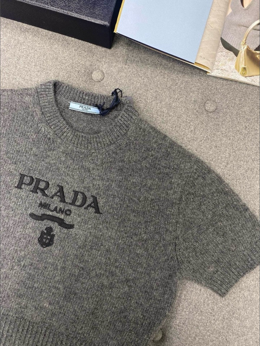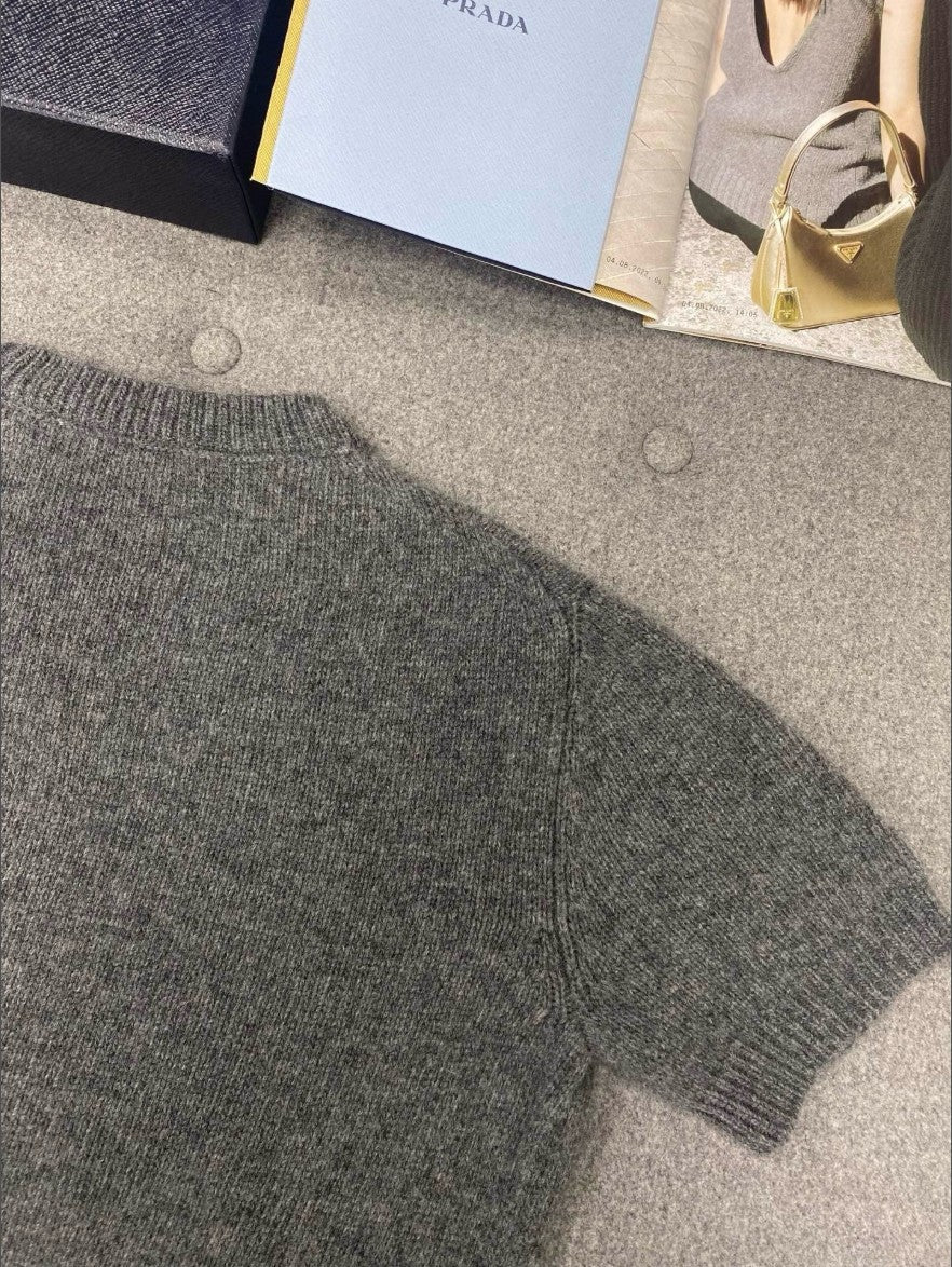 프라다 여성 캐시미어 크롭 반팔 니트