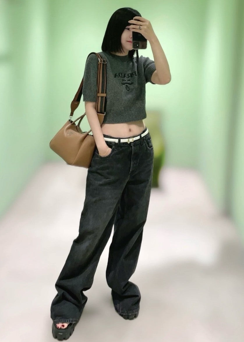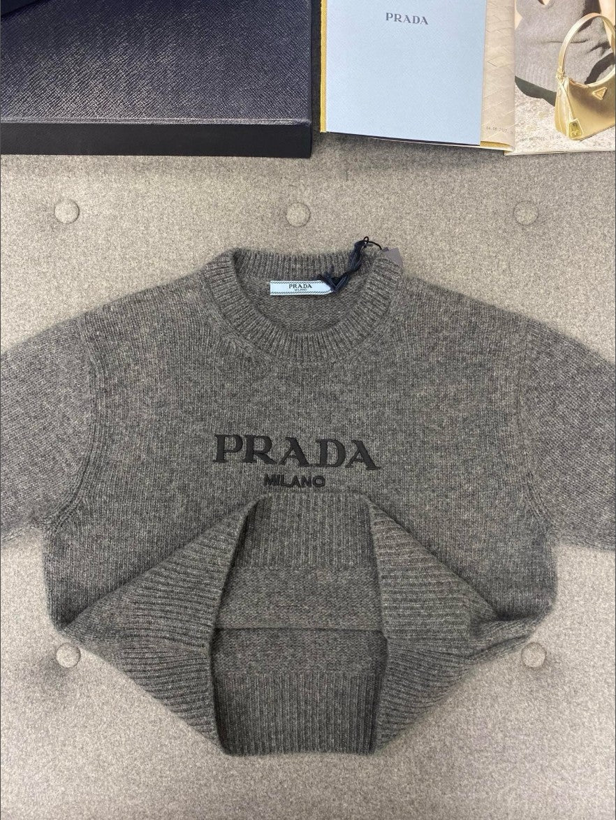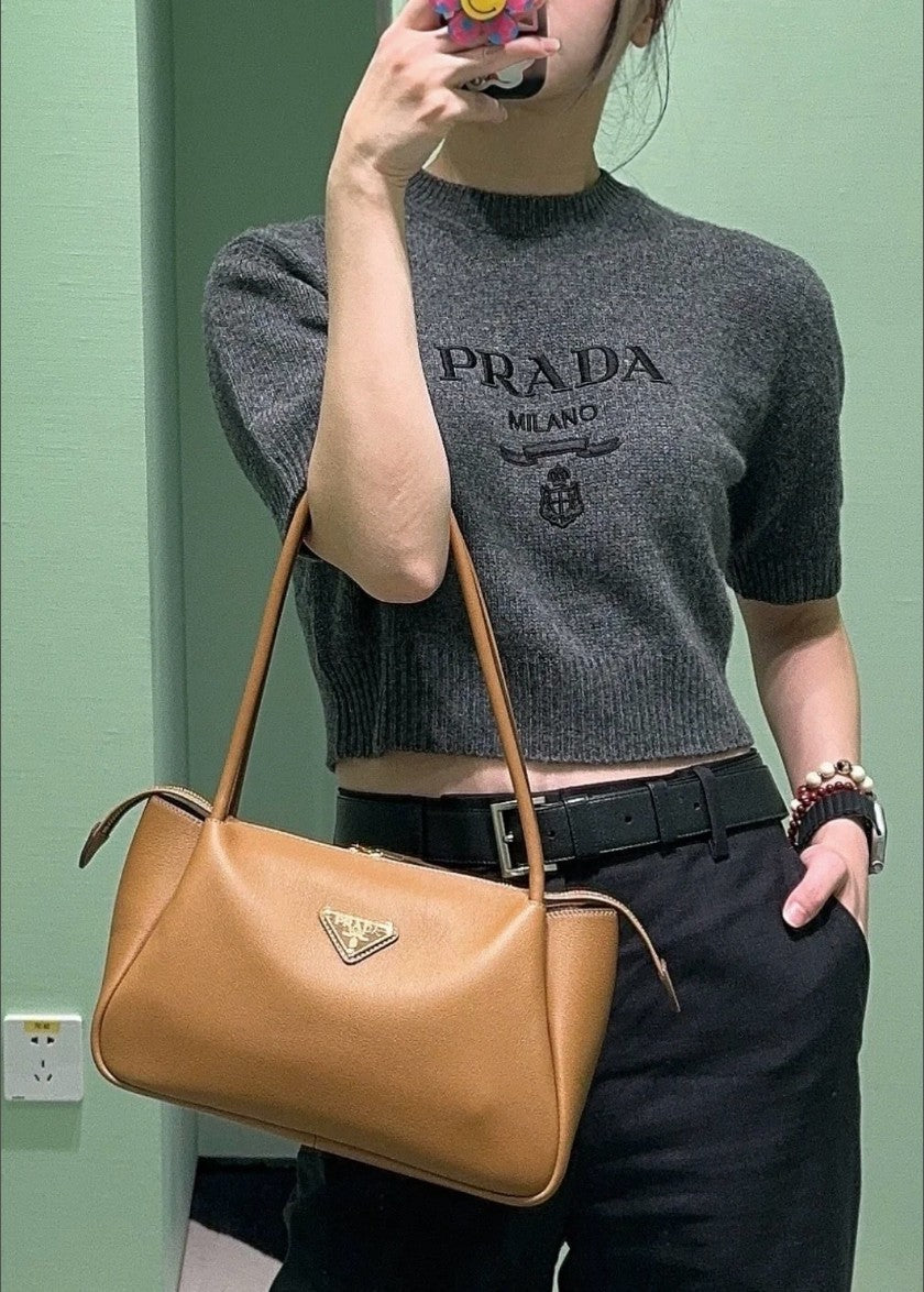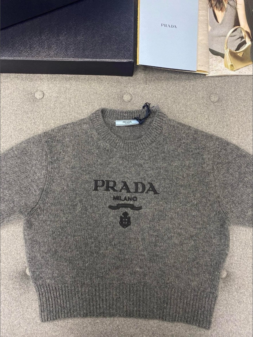 프라다 여성 캐시미어 크롭 반팔 니트